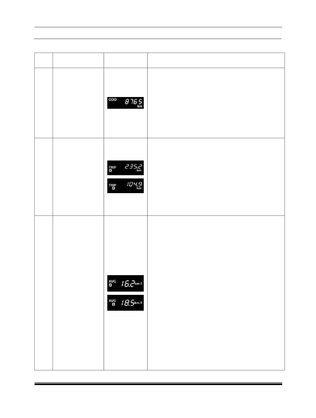 trip, Average fuel economy is displayed as ‘--.-‘, take
