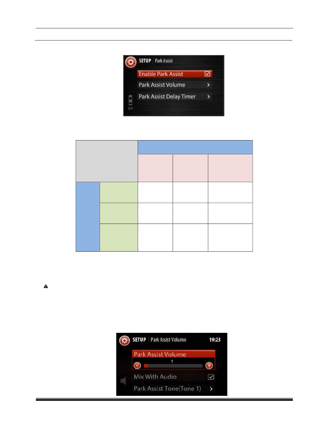 5. Park Assist Audio Settings: