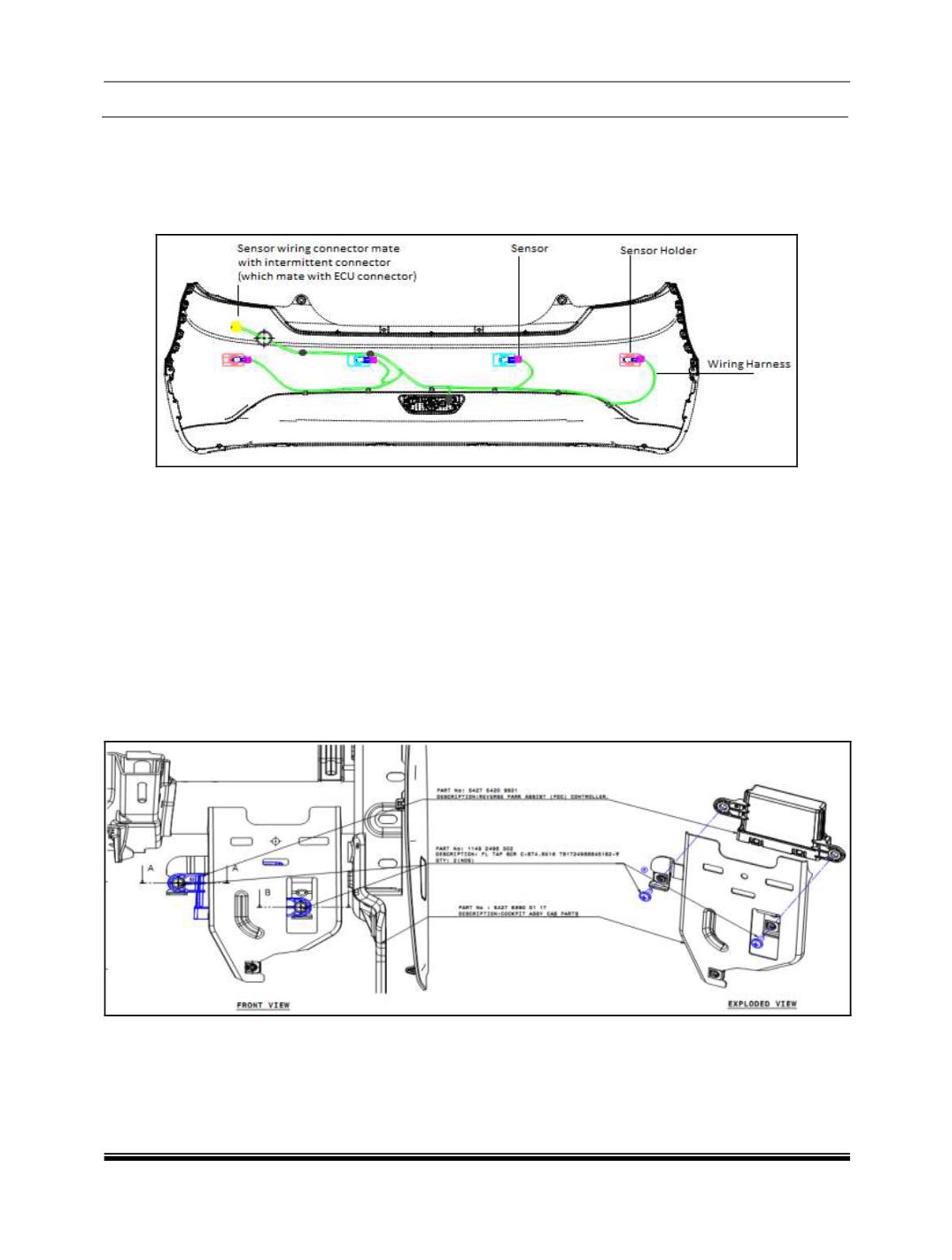 Ultrasonic sensors shall be mounted on the rear bumper and hardwired to the PDC ECU. PDC ECU shall